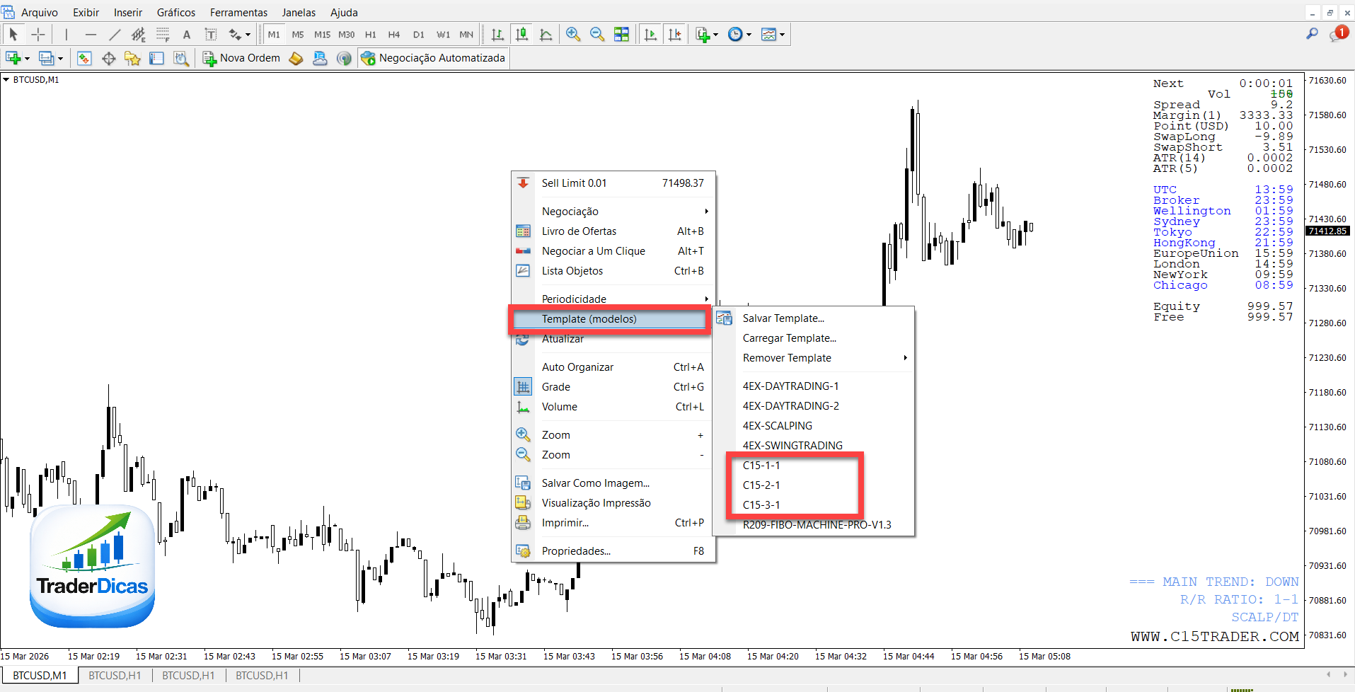 Com os arquivos fornecidos, o trader pode aplicar o template desejado e visualizar imediatamente os indicadores configurados no gráfico.