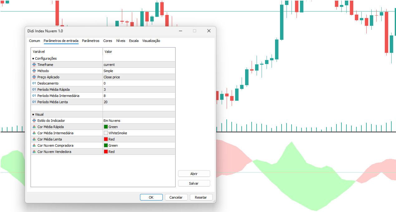 O Indicador Didi Index, criado pelo trader brasileiro Didi Aguiar, é uma ferramenta de análise técnica baseada no cruzamento de três médias móveis exponenciais (3, 8 e 20 períodos).